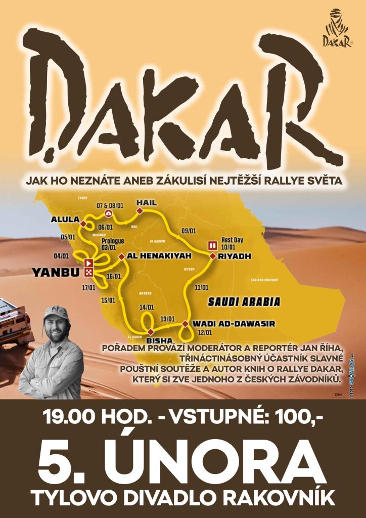 Čeká vás poutavé vyprávění, zákulisní příběhy, nepublikované fotografie i videa přímo z dakarského konvoje.